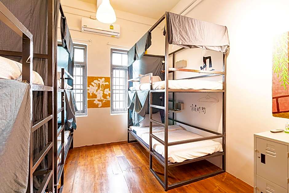 The dormitory room offers air conditioning, a seating area, as well as a shared bathroom featuring a shower and a hairdryer. The dormitory room provides a safe deposit box, parquet floors and garden views. The unit offers 6 beds.